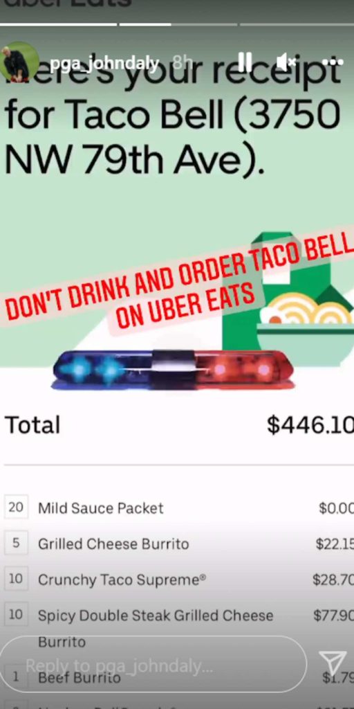 Somehow, none of the normally relatable stuff Daly does, be it playing golf barefoot with an untucked shirt or grabbing a few beers at the turn, are as relatable as the move the two-time Major champion pulled this past weekend. Because, my friends, there is simply nothing as relatable as a drunken food order.