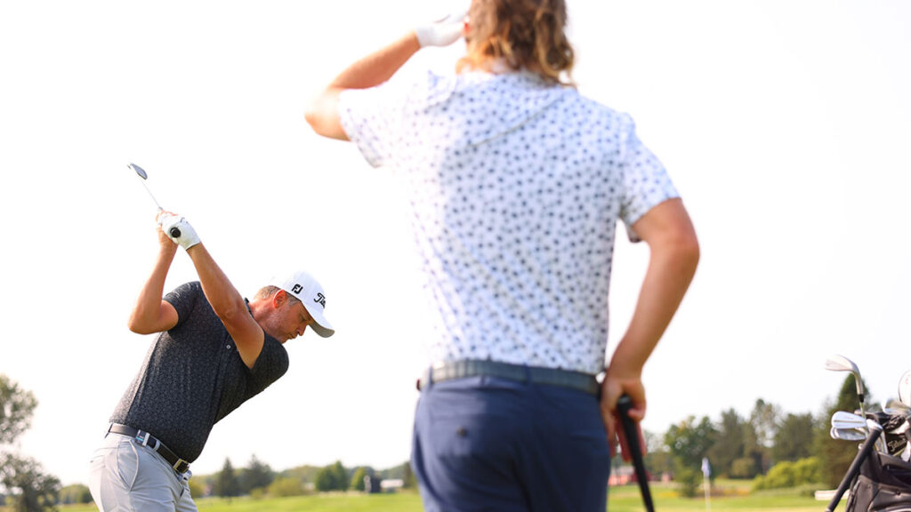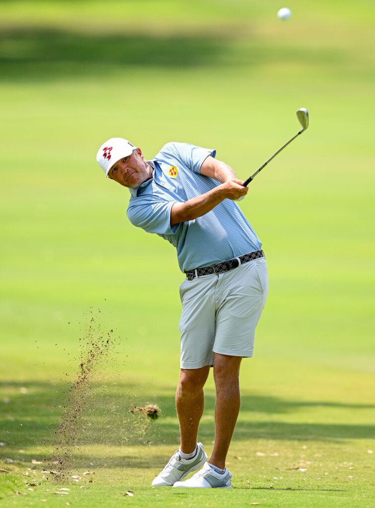 Many amateurs, at least in the pro-ams I play, think they hit it a lot further than they do. The truth is your 7-iron doesn’t fly as far as a 7-iron for a professional. But that’s OK; we are athletes who train every day. As an amateur, really learn your average distance for each club and work from there. Take an extra club on approach shots; it will encourage you to swing smoother and having better timing. You’ll also learn which club to hit to ensure a mis-hit lands on the front of the green, a flushed shot carries towards the middle or back of the green and your average strike finishes somewhere near the hole. That way, you’ll start hitting more greens.