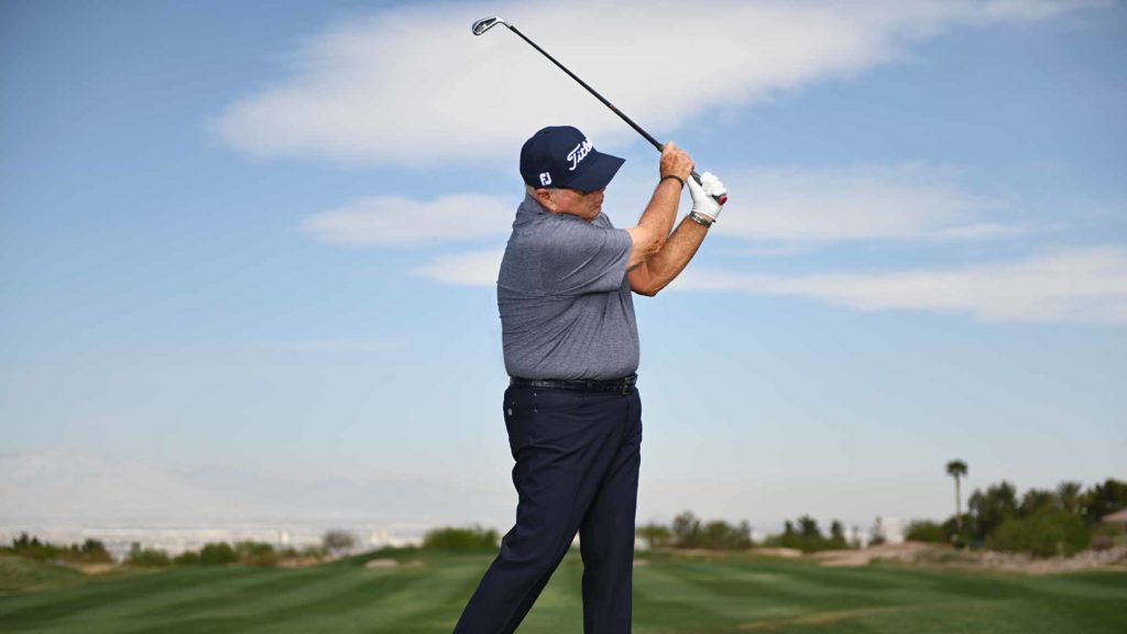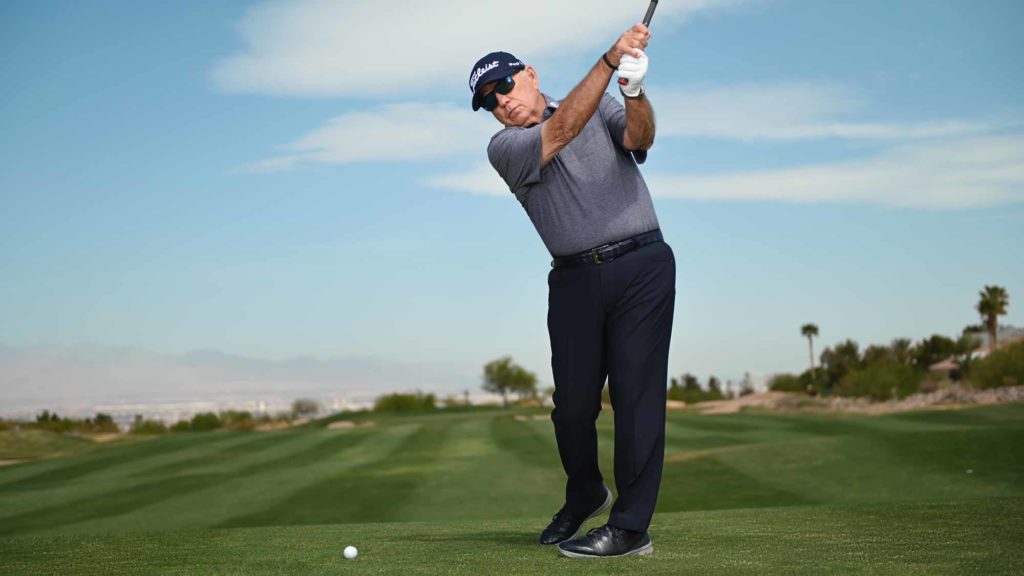 Stewart has one of the longest, widest swing arcs on the PGA Tour. He does a great job extending his arms on the backswing and making a full turn to the top, which equates to big distance. (Last year, at age 48, he averaged 307 yards off the tee to rank in the top 30 on tour.)