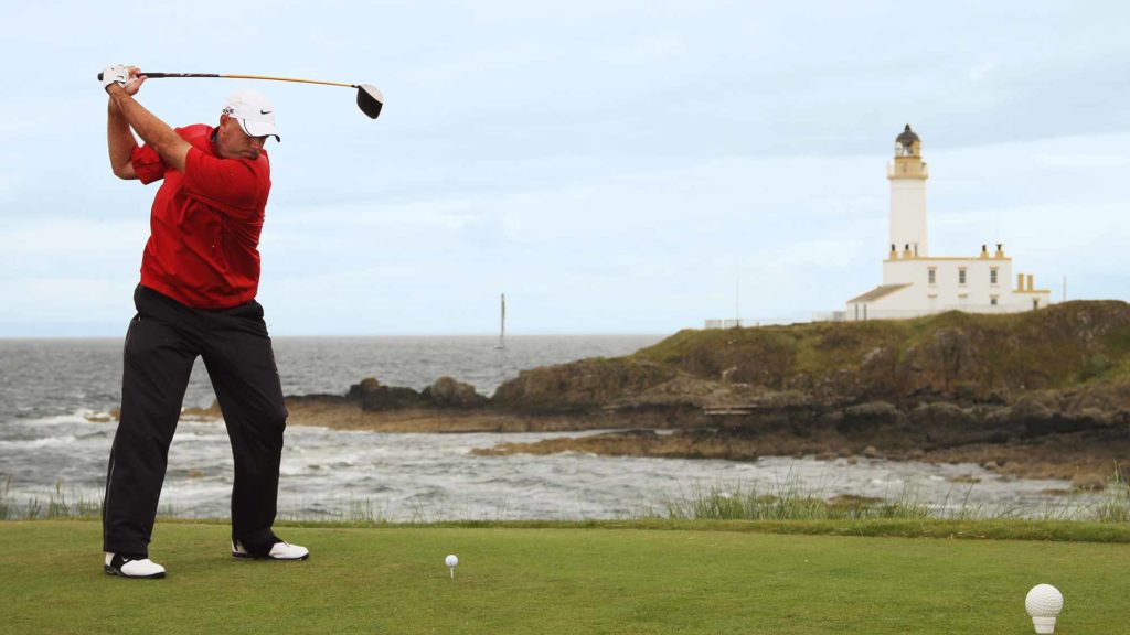In the days preceding the 2009 Open Championship at Turnberry, Stewart was not turning his shoulders like normal. He was extending his arms, but because his turn was reduced, the backswing was too upright – and he was getting narrow on the downswing. As a result, he had to back up coming into the ball to shallow out his swing.