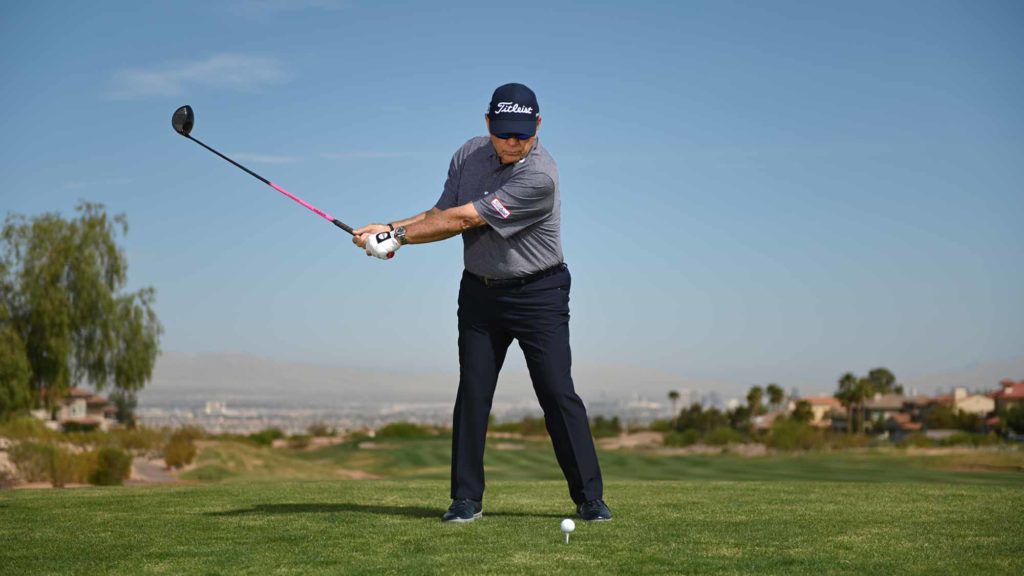 Greg was the best driver I’ve ever seen with a wooden club. He could hit it 300 yards in the air and place it wherever he wanted in the fairway. But he did have one recurring swing fault: he’d release the club out too much, instead of letting it arc around his body in the follow-through. That could produce an untimely hook.