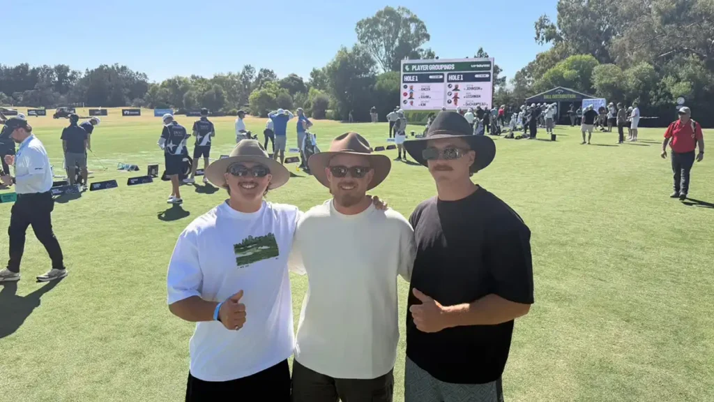 Meet Ash Humphreys, Jack Downard and Brandon Wright. Three mates from Rockingham, south of Perth, who decided that if you’re going to do LIV Golf Adelaide, you may as well really do it.