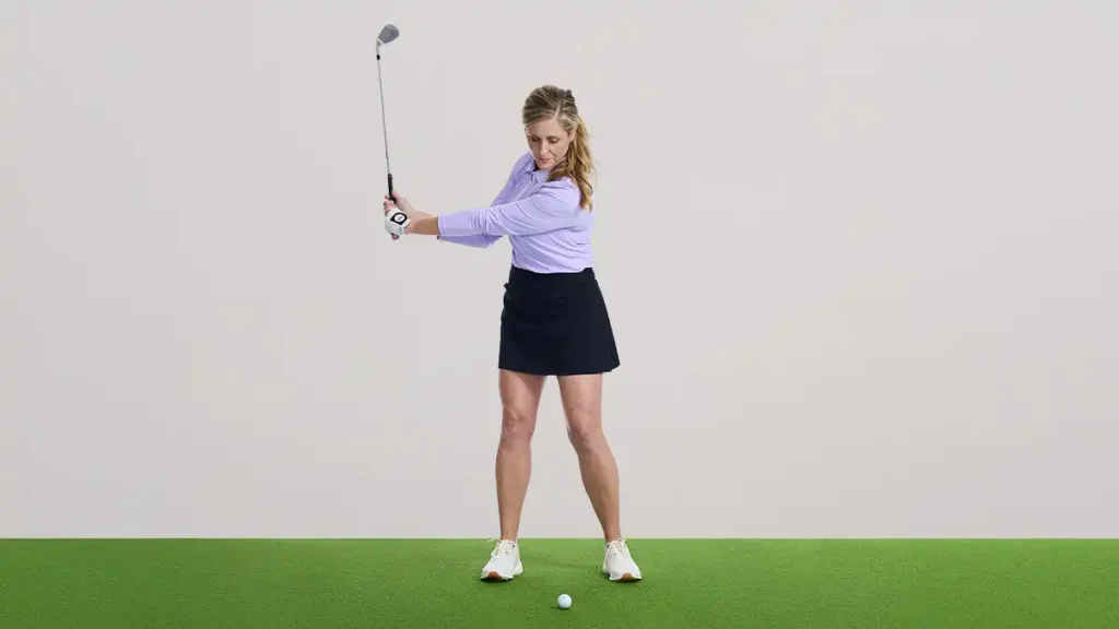- Stop the backswing when your lead arm is roughly chest high.