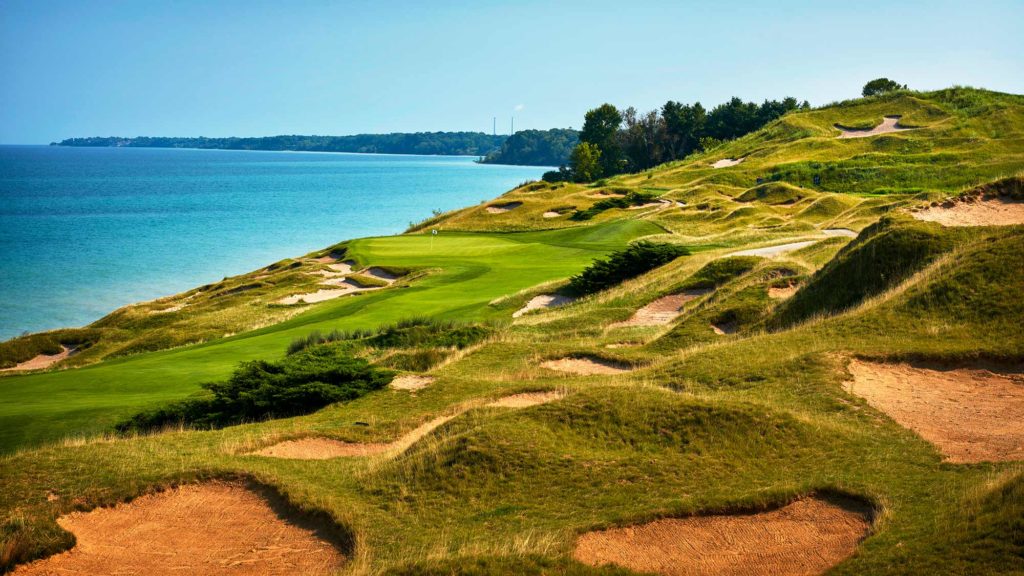 What can you say about this course? Pete Dye crafted it to look like Ballybunion Golf Club in County Kerry, Ireland, at the request of Herb Kohler, and the goal was always to host championship golf. It’s not a “true” links course, and it may not play very hard unless the winds are up – the course’s logo is a kind of Aeolus-like wind god, although he is not always invoked, but it’s a miracle of construction, it’s beautiful, and it will be a scenic staging ground for the Ryder Cup.