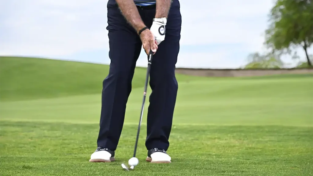 Last point: limit hand action. It’s just a little body pivot back and through. Your weight will shift towards the target and push the low point in front of the ball. You’ll clip these little shots perfectly.