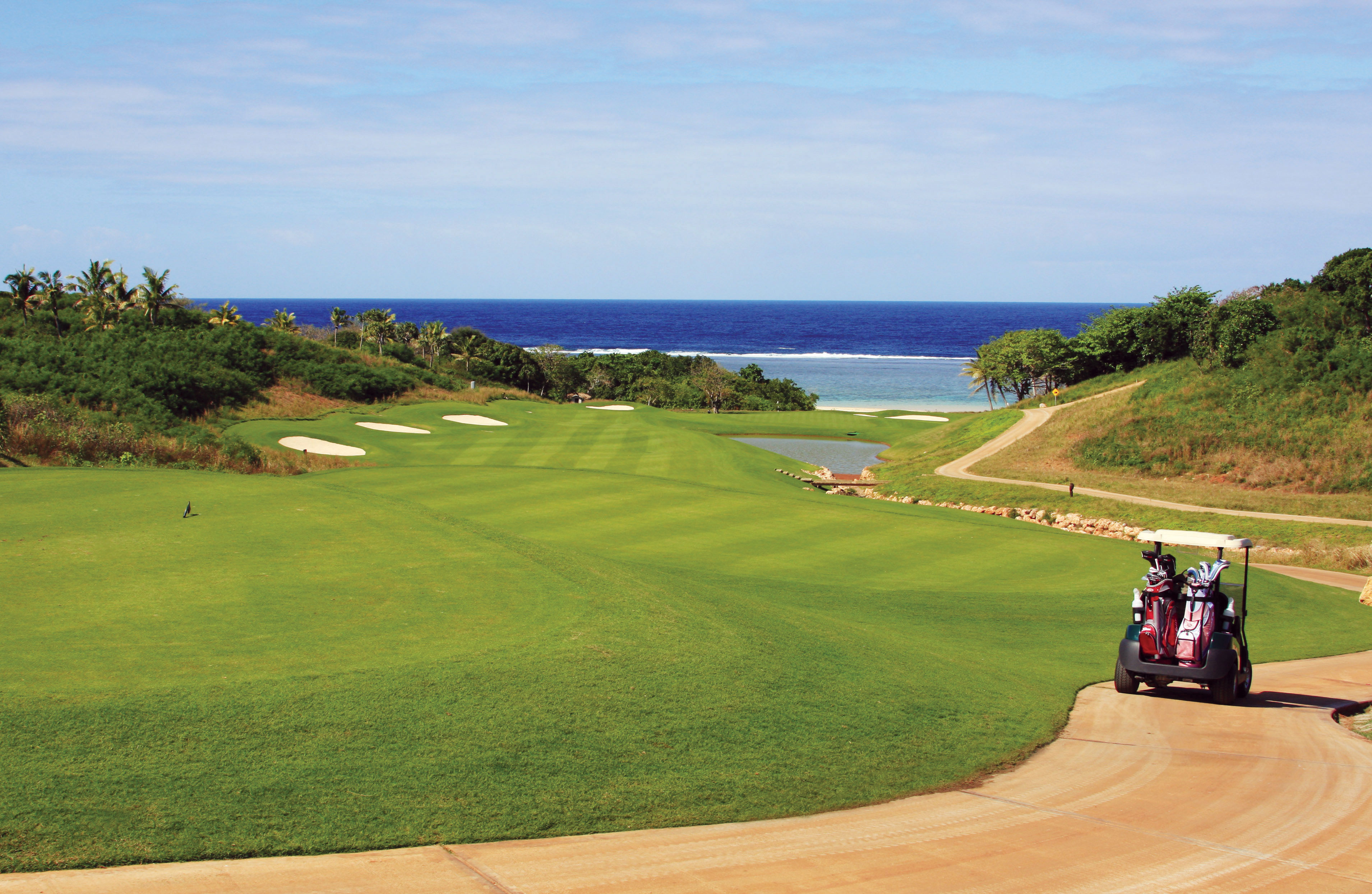 VIJAY Singh is one of golf’s perfectionists. Nothing other than meticulous attention to detail and an extraordinary work ethic earned him three Majors, and a place in the World Golf Hall of Fame. Singh’s personality is reflected in each of Natadola Bay’s 18 holes and the former world No.1 didn’t waste a square metre of the magnificent land he was gifted. Singh has routed the course beautifully so that when you’re not playing to, or running alongside, the Pacific Ocean, dramatic changes in elevation will have you teeing off cliffs, winding through palm trees and playing approach shots down steep valleys or to greens perched high above. The postcard hole is the par-3 fourth [below, first image], which runs adjacent to the beach, offering stunning views of the coral reef and the option of walking along the sand en route to the green. The ocean is also well featured in several of the short, enjoyable par 4s such as the 10th and 12th. But of the holes away from the water, the standout is the par-5 sixth [below, third image]. Here, the golfer tees off high above a fairway guarded by forest and palm trees, with the temptation to take on the sharp dogleg right to set up a birdie chance. The more difficult back nine offers some short (but challenging) par 4s, difficult par 3s and reachable par 5s, before the finishing hole takes the golfer up to the iconic clubhouse. Natadola Bay is a perfect resort course – blending the ideal amount of fun and challenge with ocean views and expert routing. Post-round, stop off at Vatu Lo Bar and Restaurant for a delicious meal overlooking the course, mountain ranges, coral reefs and rolling surf breaks.