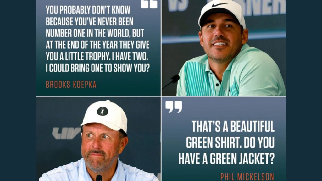 October 27th, 2022 WATCH: This Phil Mickelson-Brooks Koepka dagger-off at LIV Miami was DEFINITELY real (?) and definitely unscripted this little Brooks Koepka-Phil Mickelson back-and-forth at LIV Miami was so good that it made us wonder if it was scripted and/or rehearsed.