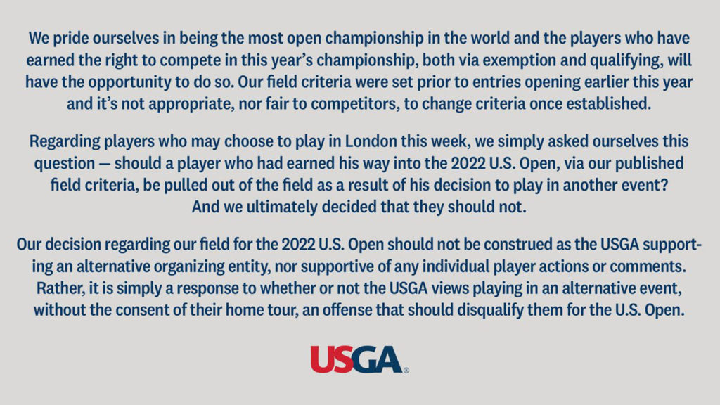 The USGA has made a call on whether LIV Golf participants like 2016 US Open winner Dustin Johnson will be allowed to play next week’s championship near Boston.