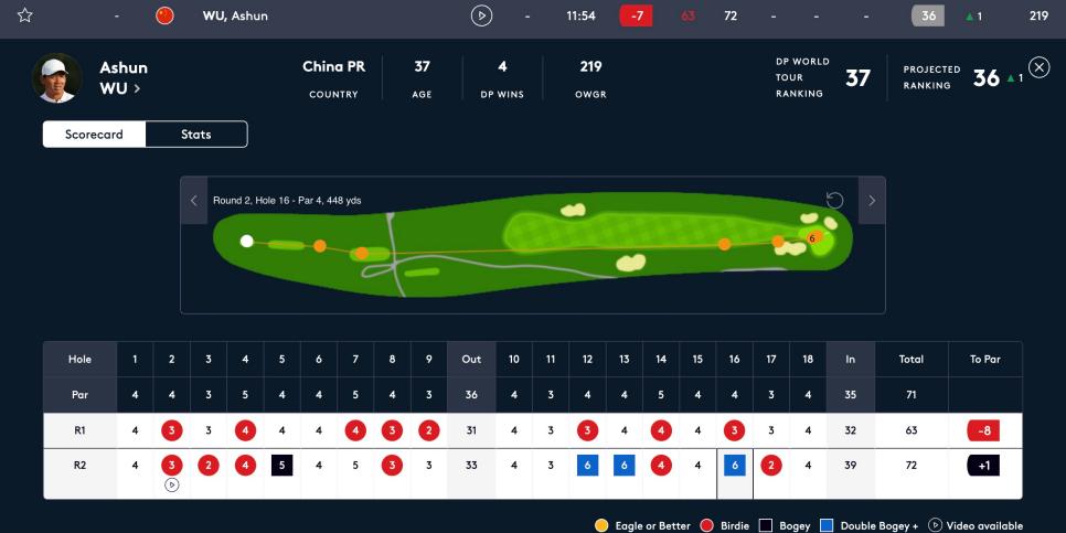 There was a bounce back of sorts. Wu hit his tee shot to four feet on the par-3 186-yard 17th hole and made birdie, then closed with par to shoot 39 on the back and one-over 72 on the round. He’s tied for 16th place, only five shots behind leaders Paul Waring and Stephen Gallacher.