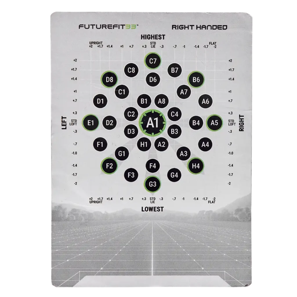 Adjusting specs can be complex. Fowler’s clubs include dozens of settings. This little chart helps him keep it all straight.
